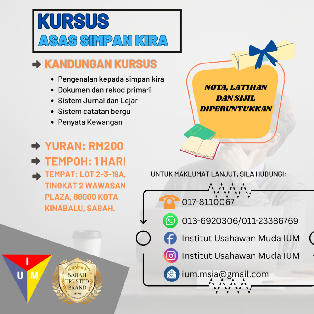 Jom sertai Kursus Asas Simpan Kira anjuran Institut Usahawan Muda (IUM)!