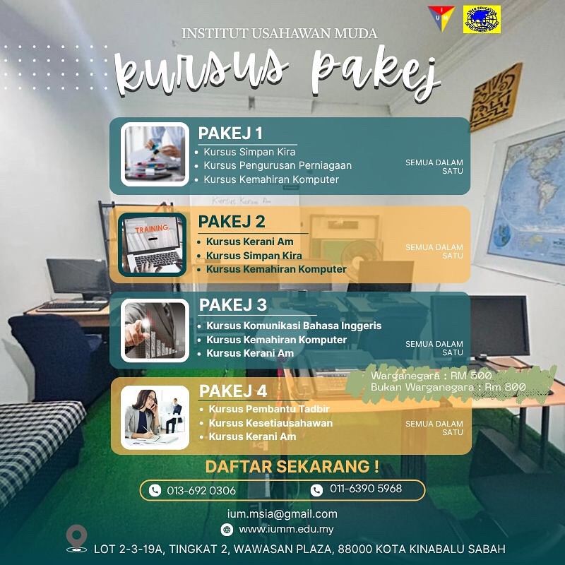 Ingin menguasai lebih daripada satu kemahiran dalam masa singkat? Institut Usahawan Muda Malaysia menawarkan 4 pakej lengkap yang merangkumi kemahiran utama untuk kerjaya moden — semuanya digabungkan dalam satu latihan intensif yang praktikal dan mudah difahami.